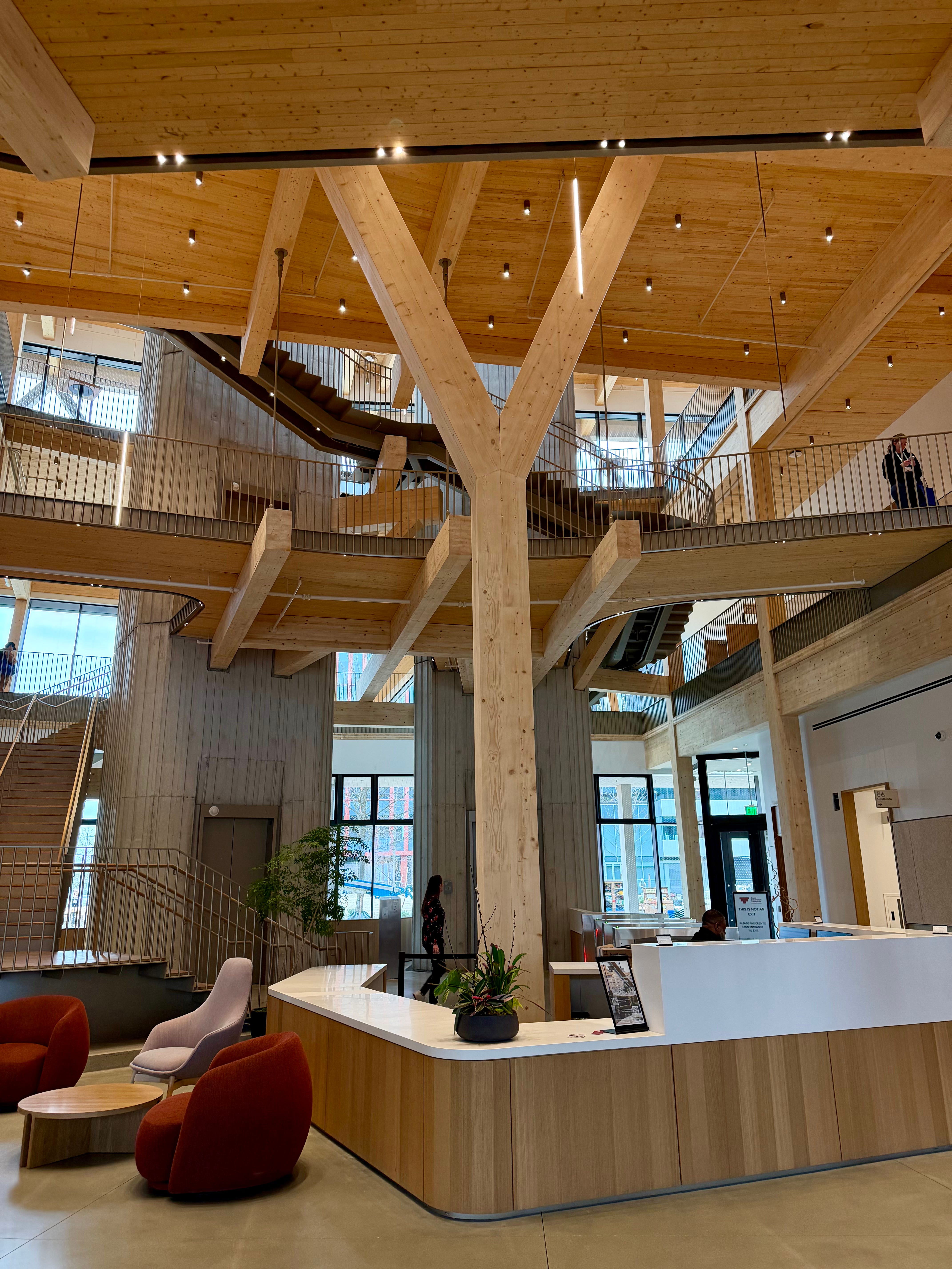 The Treehouse is the same story from the university side. Athené described it as the front door to the campus: a public cafe on the first floor, six breakout rooms on the second, and a canopy ballroom on the top floor that holds up to 800. It’s designed for “collision,” as she said, and if you know me, you know I love collisions. People coming for a conference bump into someone grabbing a coffee who works in the lab next door. That’s the point.