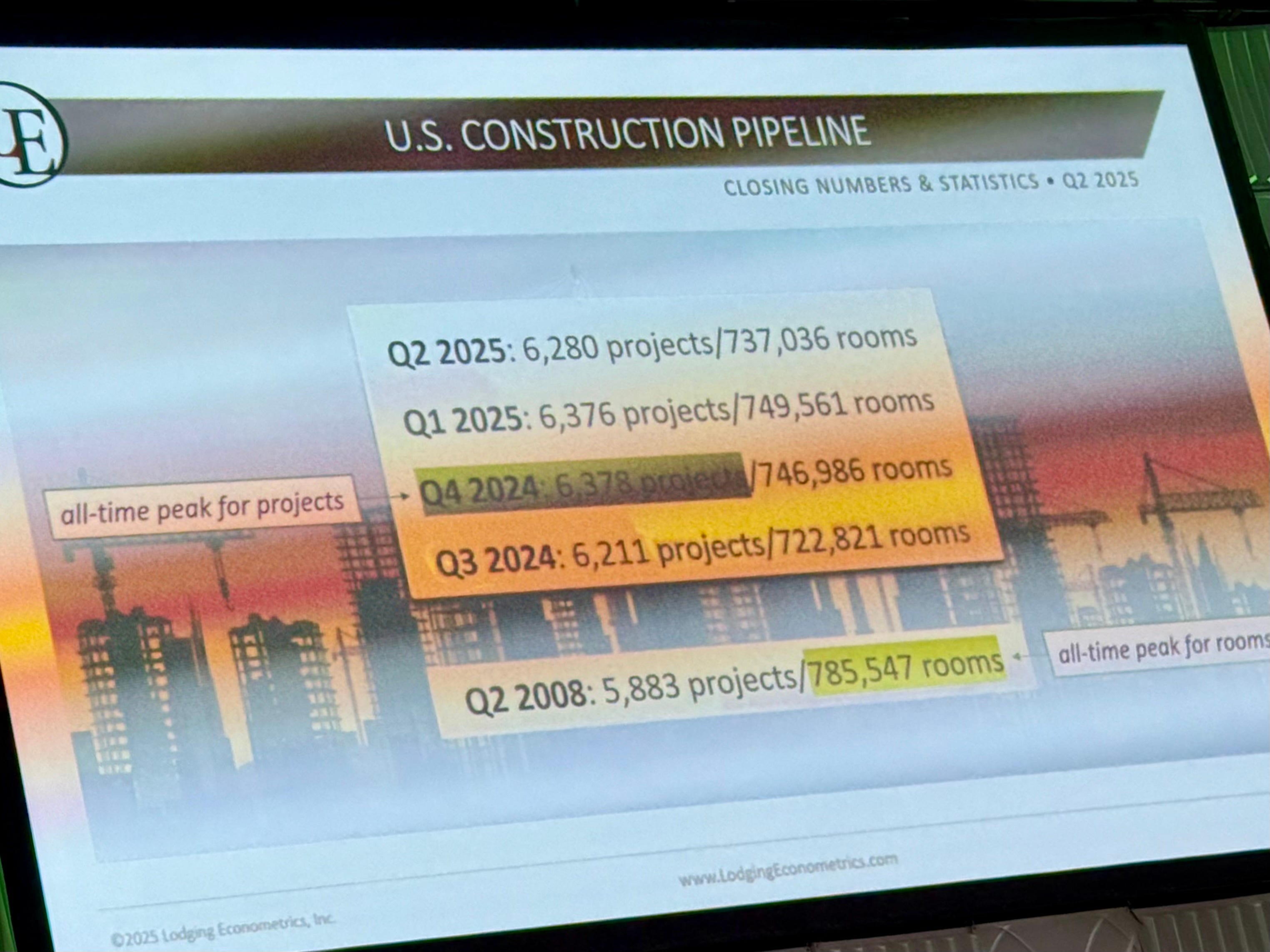 JP Ford from Lodging Econometrics offered a counterbalance: the construction pipeline is still strong—just smaller. “We’re building more hotels with fewer rooms,” he said. “Renovations and conversions are where the action is.”