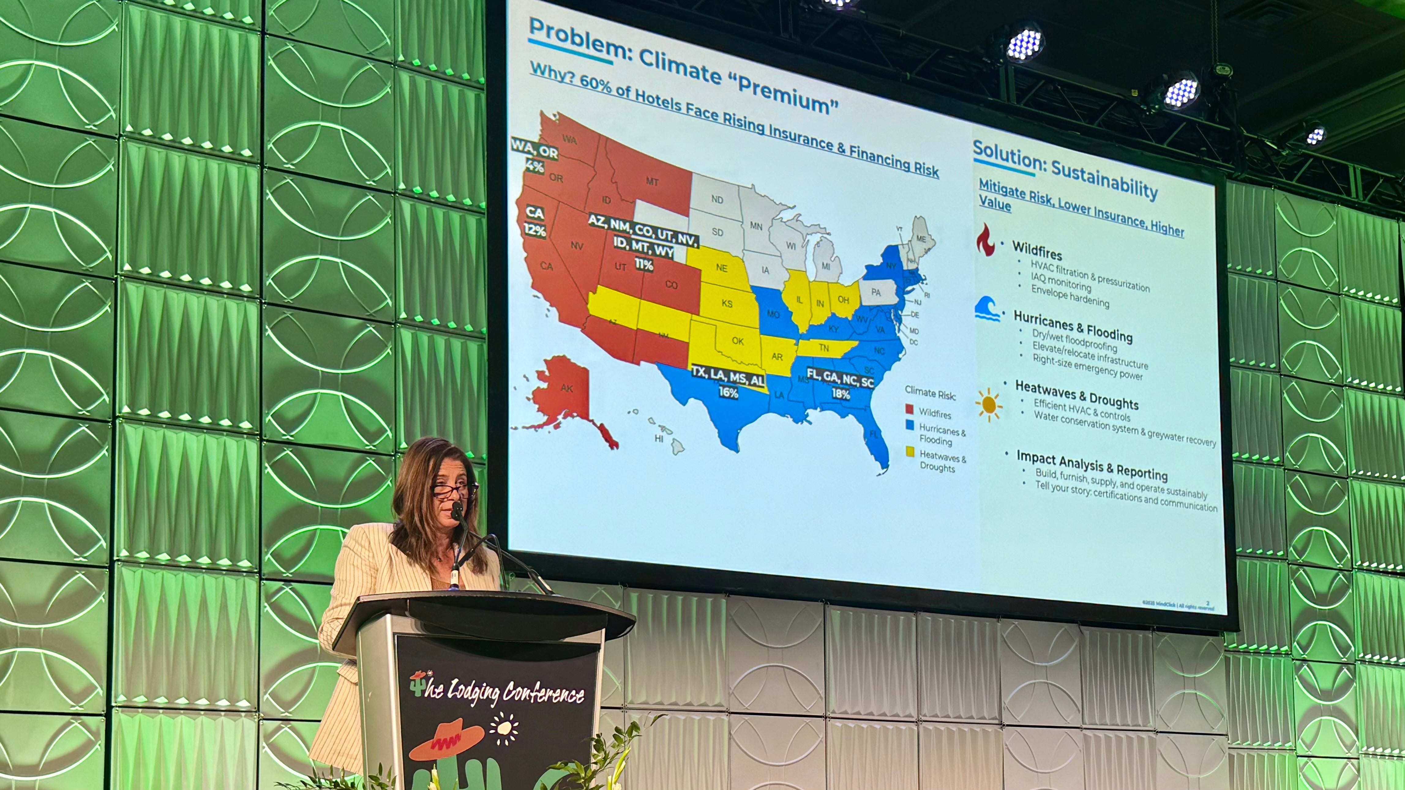 The afternoon brought a reset in tone. Joanna Abrams of MindClick took the stage and reframed sustainability as a straight business play: “Energy costs are up, but efficiency is profit.” She pointed to $6 billion in C-PACE financing available for retrofits and noted that certified “rated” hotels are already winning more RFPs from corporate buyers. “Sustainability isn’t a box to check—it’s revenue protection.”