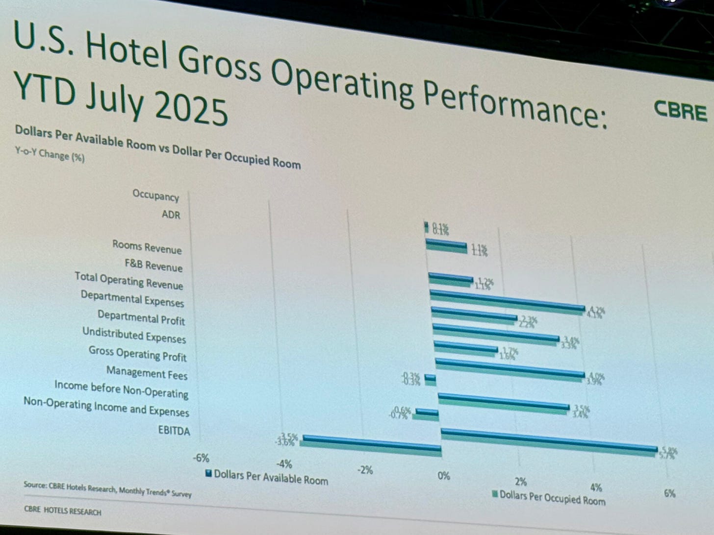Andrea Grigg from CBRE delivered one of the more memorable slides of the week: EBITDA down 3.5%. “The wheels came off in Q2,” she said, but added, “Not everything is lost. The opportunities live in efficiency—in how you manage the fixed costs everyone else ignores.”